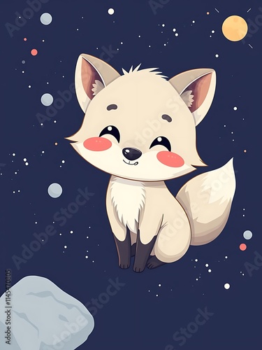 Smiling fluffy fox joyfully floats in a fantasy-inspired digital artwork.. AI Generated
