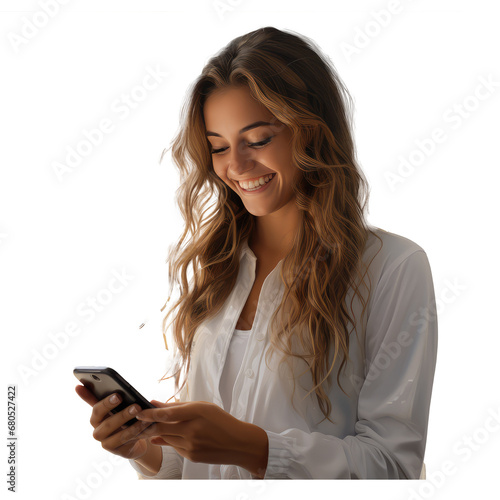 smiling girl looking at the phone