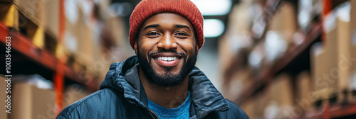 Smiling man in a warehouse