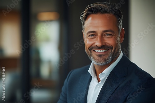 Smiling Mature Executive in Navy Blue Suit