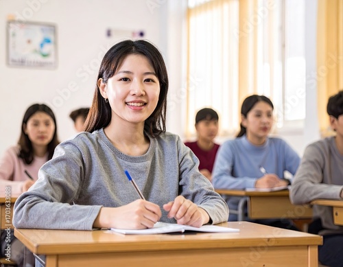 Smiling Student in a Classroom Setting