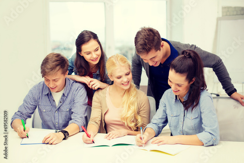 smiling students with notebooks at school