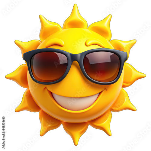 Smiling sun emoticon with sunglasses isolated on transparent background