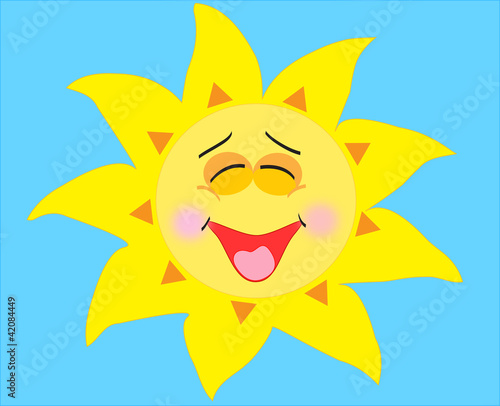 smiling sun on a blue background - illustration