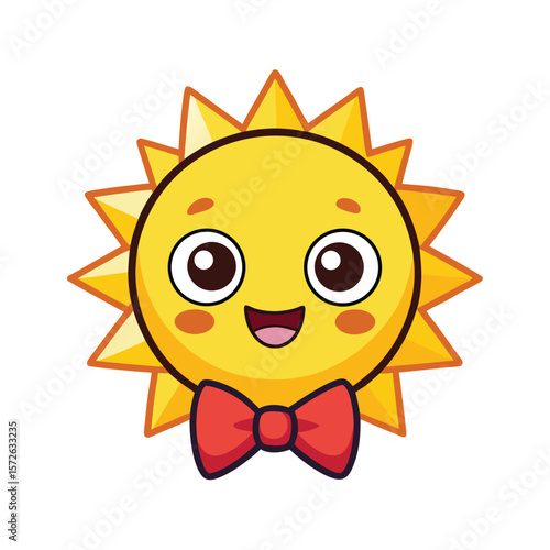 Smiling Sun Wearing Bowtie Cute Vector on White Background