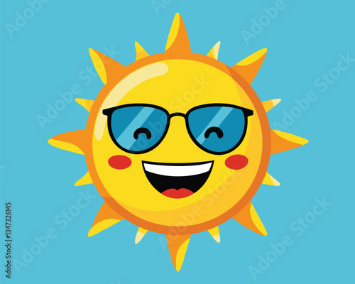 Smiling Sun with Sunglasses. Summer Illustration