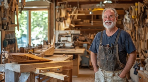 Smiling Woodworker in his Workshop