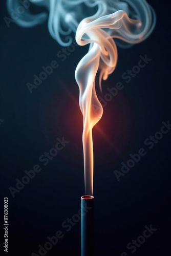 Smoke rises from a pipe on a dark background with a rainbow spotlight effect on a ray of light, smoke, effects