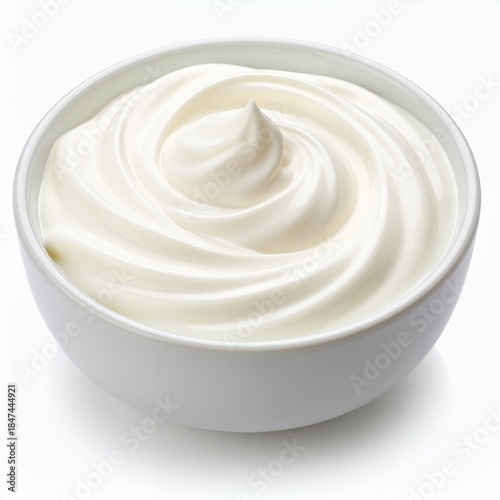 Smooth and decadent creamy swirl in a bowl, isolated on a clean white backdrop