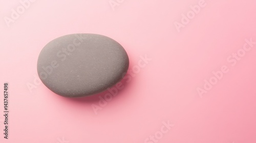 Smooth flat grey stone centered on a powder pink background, minimalistic style, soft shadows