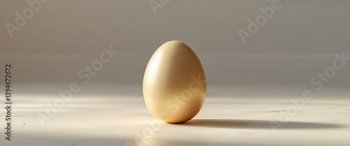 Smooth golden egg resting on a clean surface in soft lighting showcasing its simple elegance.