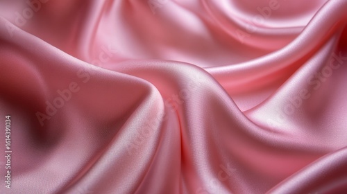 Smooth, luxurious folds of pink satin fabric with soft lighting and delicate textures, offering a refined backdrop for fashion design, product presentation, elegant packaging, or textile projects.