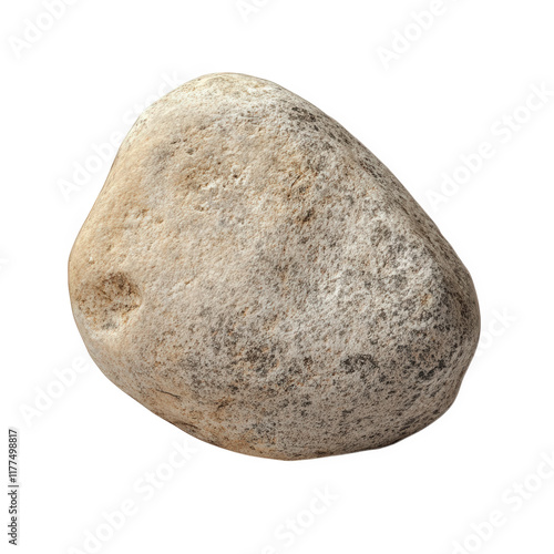 smooth. rounded rock with a light gray and beige color. showcasing its natural texture and shape it is presented against a white background. emphasizing its form and surface details the rock can be us