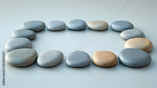 Smooth stones arranged in rectangle on neutral background; Zen garden concept; website design