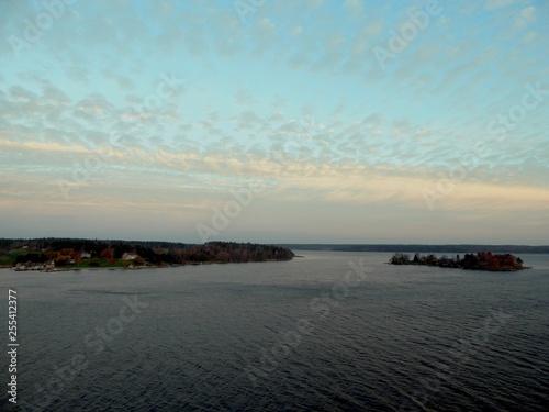 smooth surface of the sea on the background of cirrus clouds