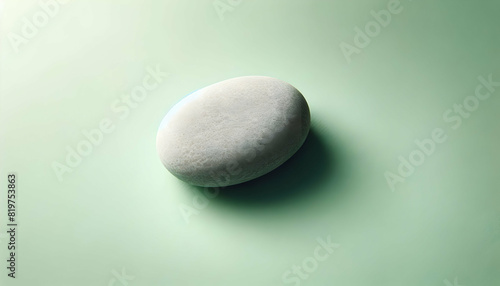 Smooth White Pebble on Light Green Background, Smooth white pebble on a light green background, showcasing simplicity and natural beauty.