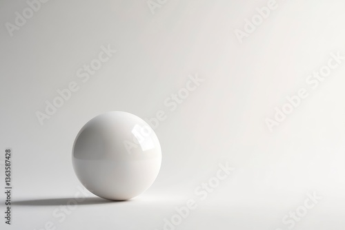 Smooth White Sphere Still Life on a White Surface Casting Shadow