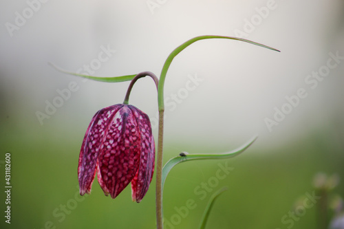 Snake's head fritillary (Fritillaria meleagris) close-up view growing in field
