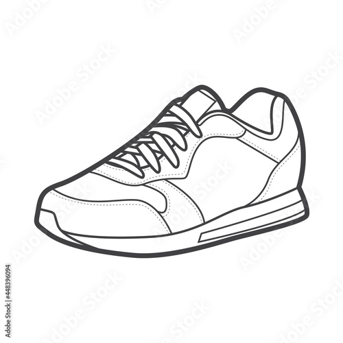 Sneakers. Shoes sneaker outline drawing vector, Sneakers drawn in a sketch style, black line sneaker trainers template outline, vector Illustration.