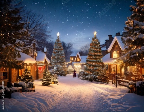 snow covered Christmas evening,chirstmas background