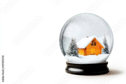 Snow Globe with Cabin and Pine Trees in Winter Scene