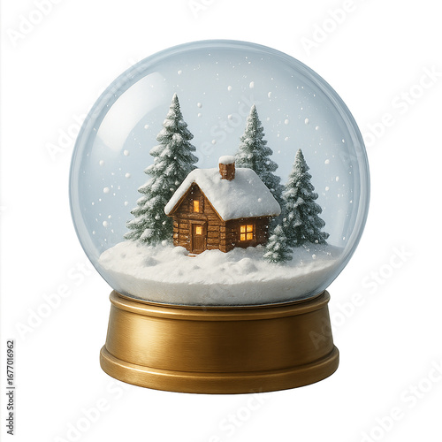 Snow globe with winter cabin and falling snow for Christmas decoration, capturing snow globe charm and peaceful snow globe scene, Isolated on transparent background, PNG die-cut for advertising.