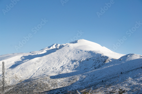 Snow-capped mountain peaks on a sunny day. background for winter sports and winter holidays