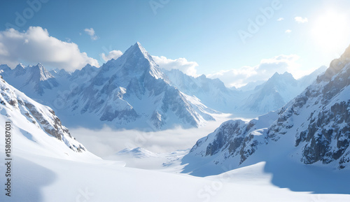 Snow-Capped Mountain Peaks Under a Clear Blue Sky