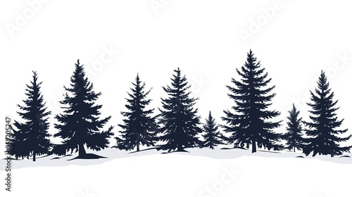 Snow-covered forest silhouette vector art on a white background. This minimalist illustration captures the serene beauty of a winter woodland scene with simple, elegant lines and shapes.