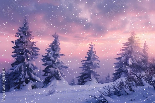 Snow-covered landscape and evergreens in Germany