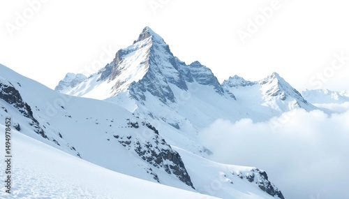Snow-covered mountain peak against stark white, scenery, winterwonderland, background