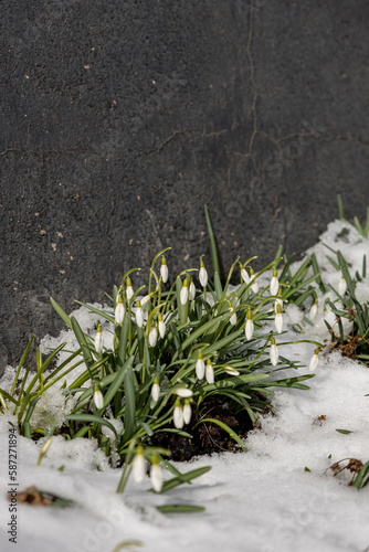 snowdrop flowers on the snow