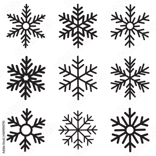 Snowflake different icons. snowflakes icon, snow or snowflake winter symbol set vector art illustration isolated on transparent png Blue snowflake icon set isolated vector illustration.