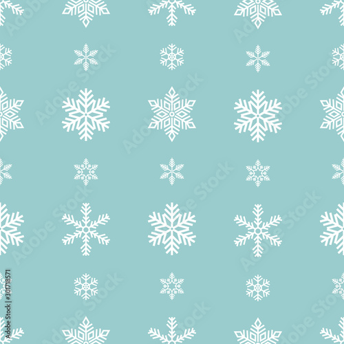 Snowflake holiday decoration, seamless pattern. Snow flat sign isloated on green background