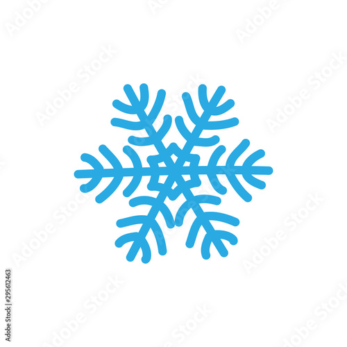 Snowflake icon. Blue silhouette snow flake sign, isolated on white background. Flat design. Symbol of winter, frozen, Christmas, New Year holiday. Graphic element decoration. Vector illustration