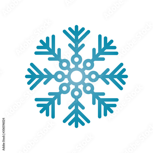 Snowflake icon. Blue silhouette. Vector drawing. Isolated object on a white background. Isolate.