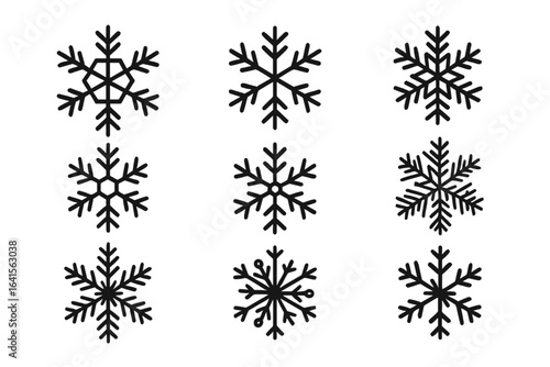 Snowflake Icon Set with Transparent PNG and Vector Illustration, Winter Holiday Design Elements, Frozen Crystal Patterns, Seasonal Decorative Symbols, Cold Weather Graphics