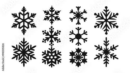 Snowflake vector elements set, snowflake silhouettes