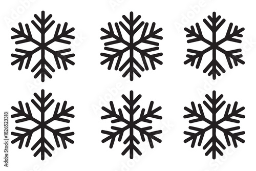 Snowflake winter icon set minimal black silhouette on white background