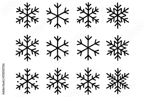 Snowflakes icon set doodle style, hand drawn. Vector stock illustration