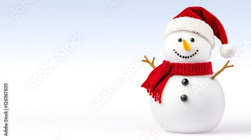 Snowman Wearing Red Scarf and Santa Hat in Winter Season