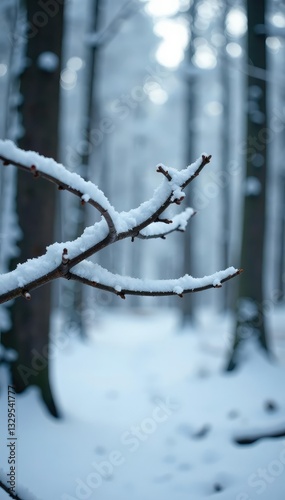 Snowy Forest Branches in Isolated Composition, isolated, icy, twig