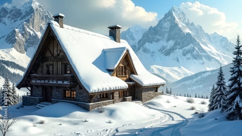 Snowy Mountain Cottage Snow Scene