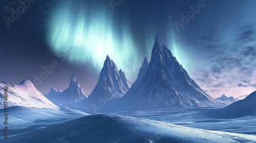 Snowy Mountains Under an Aurora Borealis