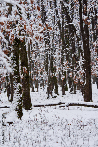Snowy oak forest landscape
