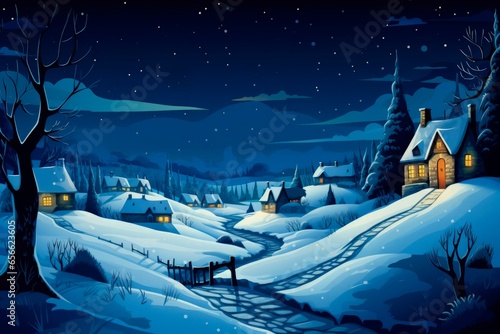 Snowy Village at Night