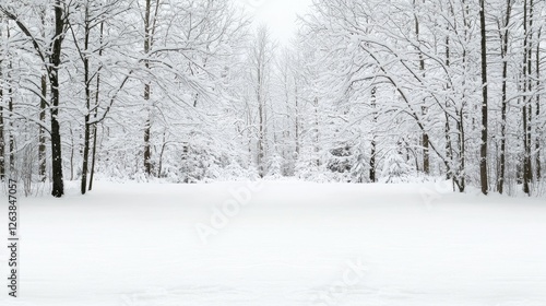 Snowy winter forest path, tranquil scene, background for winter wonderland, holiday card
