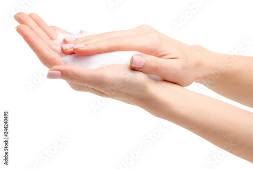Soap hands in the foam beauty health on a white background isolation