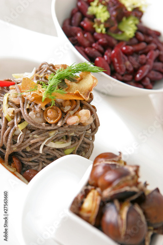 Soba noodles with mushrooms and shrimps