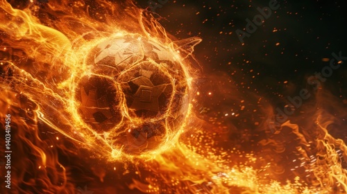 Soccer ball flying with flame lightning fast effects on black background. Generated AI image